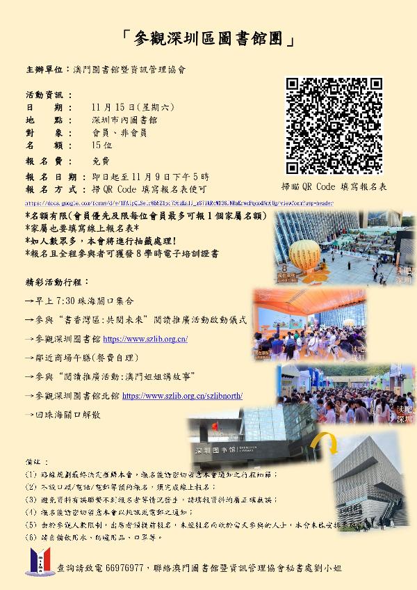 查詢請致電66976977,聯絡澳門圖書館暨資訊管理協會秘書處劉小姐